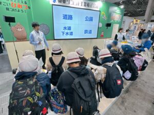 本展示会では当社の事業領域である「インフラ」をテーマに、小中学生を対象とした特別授業を実施しました。